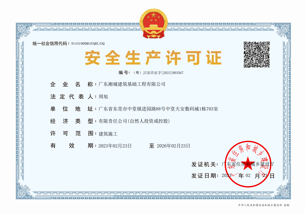 廣東湘城建筑基礎(chǔ)工程有限公司,成立于2016年,注冊資金4888萬元,持有地基基礎(chǔ)工程專業(yè)承包壹級資質(zhì),具有安全生產(chǎn)許可證??沙薪痈鞣N基礎(chǔ)類施工,包括各類樁基礎(chǔ)、基坑支護(hù)、邊坡支護(hù)、地基強夯處理等施工業(yè)務(wù)。公司為地基與基礎(chǔ)工程專業(yè)承包、工程施工、技術(shù)咨詢、技術(shù)開發(fā)、技術(shù)服務(wù)、信息咨詢實體型企業(yè)。